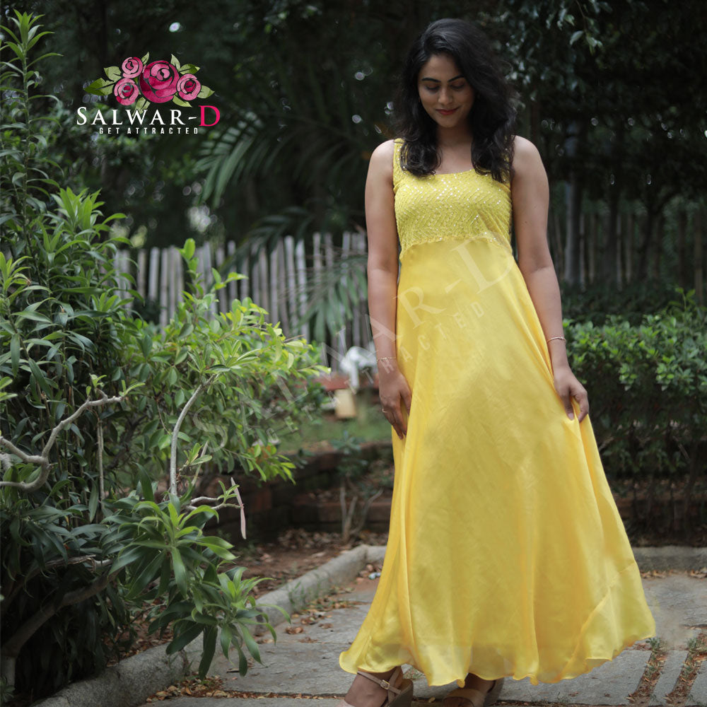 Yellow Sleeveless Anarkali